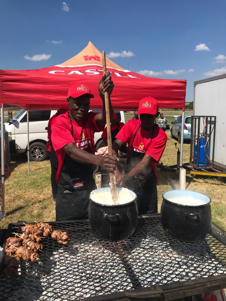 In the non-VIP section (we were the only whites) there were lots of food stands selling chicken, sausage and sadza (pictured left). And soft drinks.
